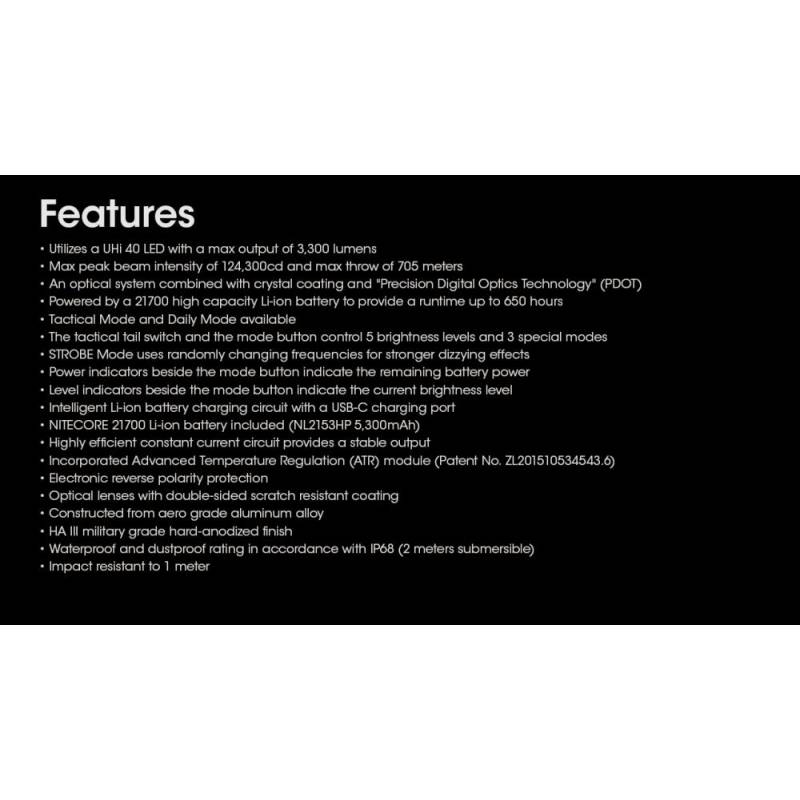 - Používa vysoko kvalitnú LED diódu NiteLab UHi 40 LED
