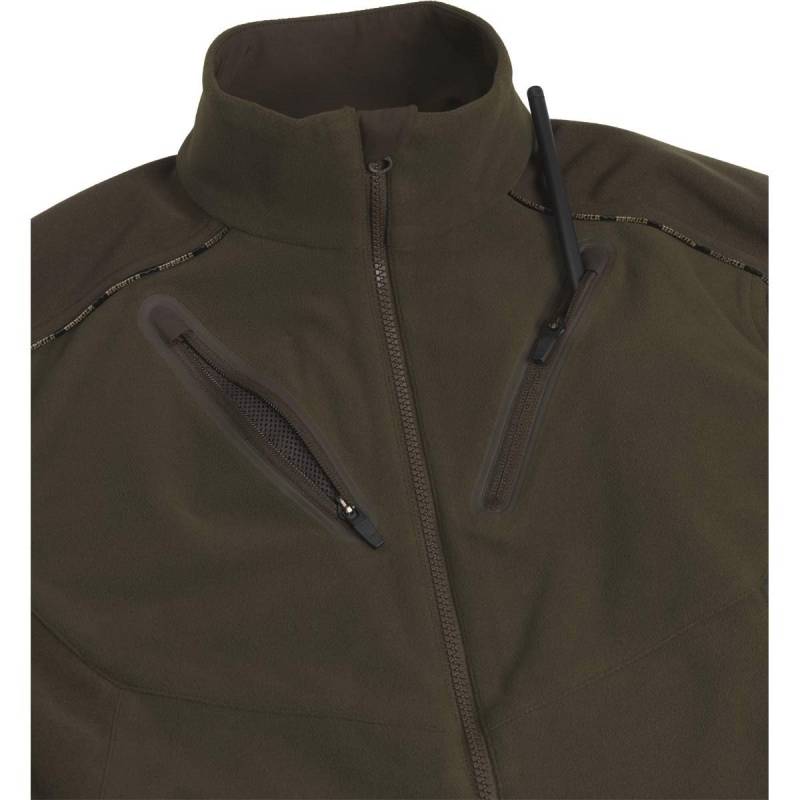 Bunda Mountain Hunter Fleece je vyrobená z mäkkej mikrofleece tkaniny. Bunda má membránu GORE-TEX INFINIUMTM WINDSTOPPER, ktorá je plne vetruvzdorná, s väčšou priedušnosťou ako nepremokavá membrána Gore-tex. Tkanina je tiež ošetrená DWR (Durable Water Repellent), aby poskytla bunde povrch odpudzujúci špinu a vodu. Vo vnútri bundy je sieťovaná podšívka, ktorá pomáha odvádzať vlhkosť od pokožky. Bunda Mountain Hunter Fleece má dve veľké predné vrecká, dve šikmé vrecká na oboch stranách hrudníka. Bunda má tiež vysoký golier, obojsmerný zips a strečové manžety na rukávoch s dierkami. Dolný lem je nastaviteľný.