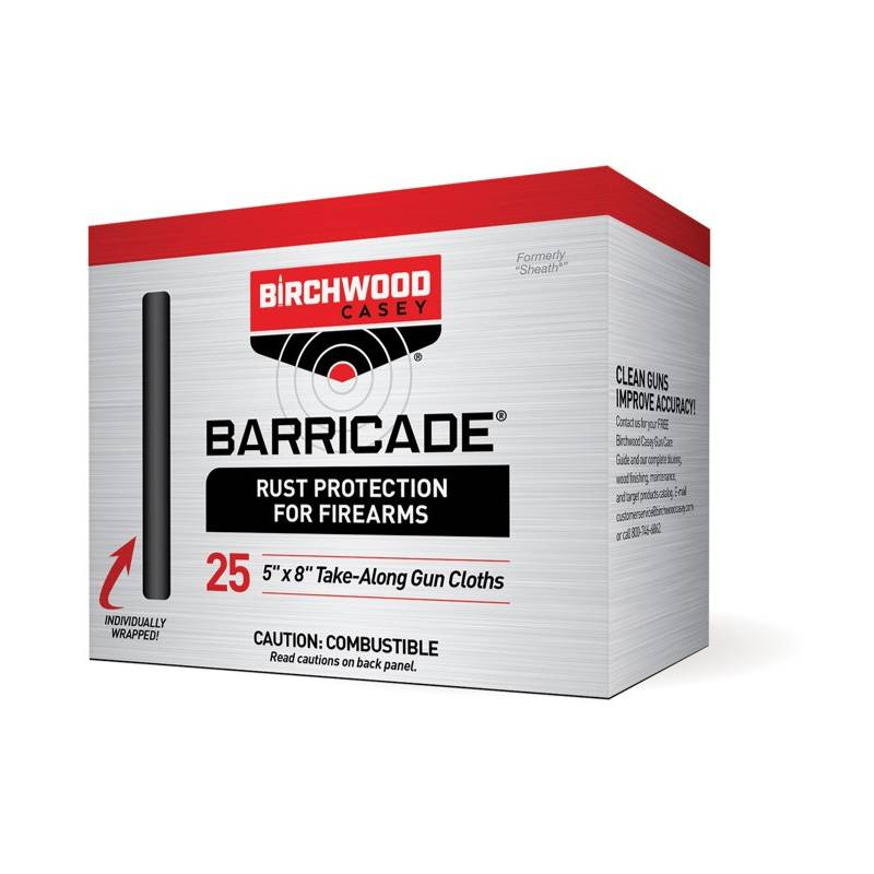 Praktické handričky na zbrane Barricade® zanechávajú na strelných zbraniach a inom kovovom vybavení trvácny ochranný antikorózny film.