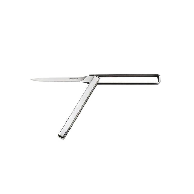 Jedinečný dizajn noža vyzerá na prvý pohľad ako zaujímavá skladačka. Dvojitým otočením čepele z nehrdzavejúcej ocele o 180 stupňov sa nôž dostane do pohotovostnej polohy. Obrátením čepele sa skryje stredovo orientovaná čepeľ. Rukoväť noža je na všetkých hranách skosená pre lepšiu ergonómiu a pohodlný úchop.