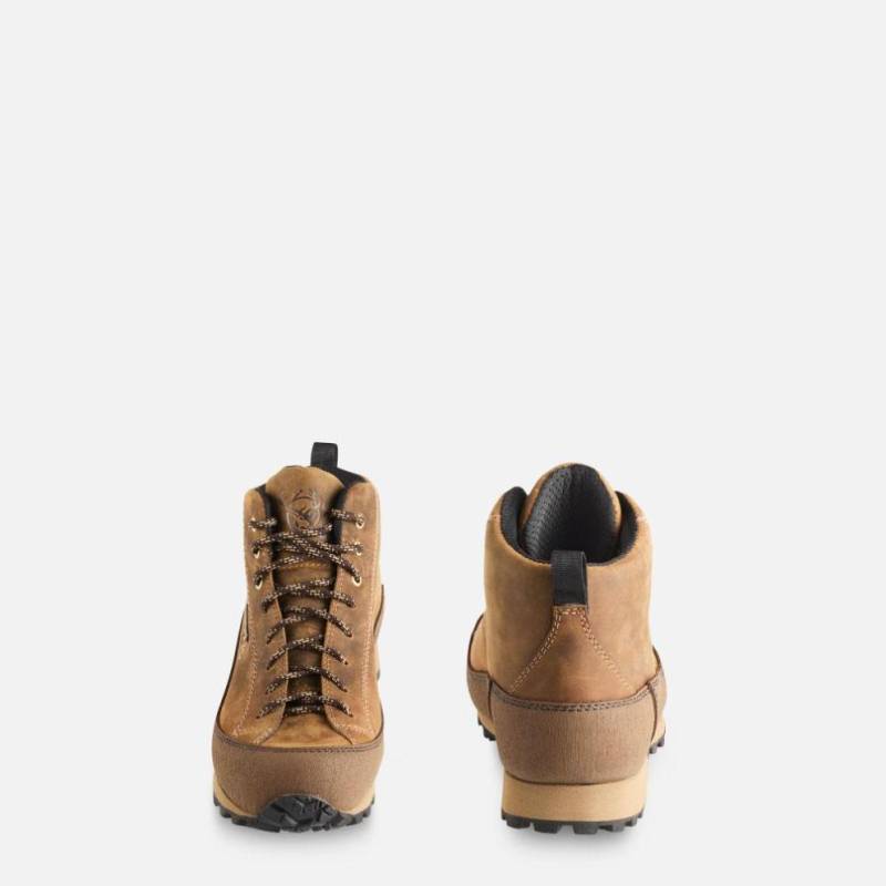 Lifestyle členková obuv vyrobená remeselným spôsobom z mastenej lícovej nubukovej kože (full grain), chránená ochranným lemom z prírodnej kože odolnej voči poškriabaniu, prešitá vláknom Dyneema na zabránenie pretrhnutia.