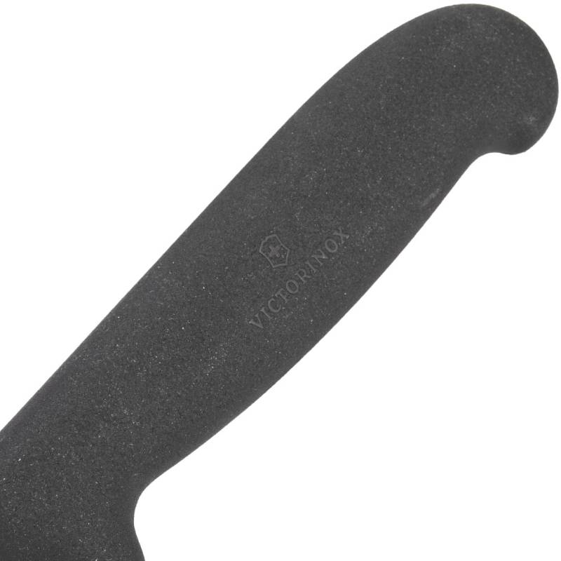Nôž na pečivo a chlieb Victorinox s pevnou čepeľou so zúbkovaním dlhou 21 cm. Rukoväť je z čierneho plastu Fibrox (vynález Victorinox), ktorá zodpovedá požiadavkám smernice (ES) 1935/2004.
