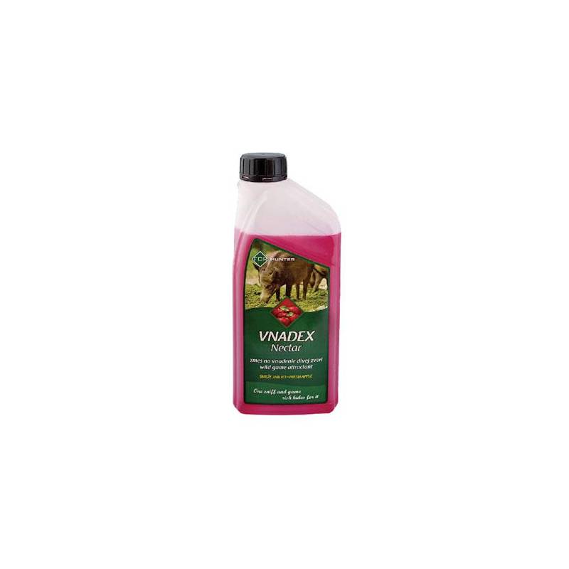 VNADEX Nectar je pachová vnadiaca zmes pre divú zver pre účely lovu, spočítania, fotografovania a filmovanie. Vnadiaca zmes VNADEX Nectar jablko zvyšuje aktivitu nielen diviačej, ale aj jelenej, danielej a muflonej zveri. Prenikavú sladkú vôňu jablka zver cíti na veľké vzdialenosti, a tak ju dokážete dostať presne tam kam potrebujete. VNADEX Nectar je pre diviačiu zver taký neodolateľný, že ju núti neustále sa vracať na vnadisko aj niekoľkokrát za deň. Ani ten najopatrnejší diviak neodolá intenzívnej vôni vnadidla VNADEX Nectar a riskne aj vlastný kožuch.